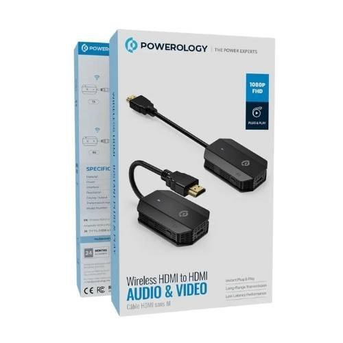 Powerology Wireless HDMI Transmitter And Receiver Pair – 1080p Full HD, 30m Range, Low Latency – Plug And Play