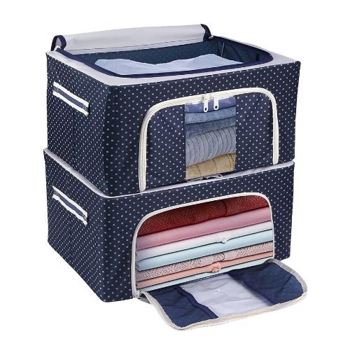 Foldable Clothes Organizer Storage Box 100L Steel Frame (3 Pack) For Wardrobe, Saree And Blankets