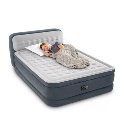 Transform any room into a cozy retreat with this premium queen size ultra plush air mattress, featuring an innovative 18-inch raised height, integrated headboard, and Fiber-Tech support for superior durability. Perfect for overnight guests, camping adventures, or temporary bedding, its built-in pump inflates in under 4 minutes.