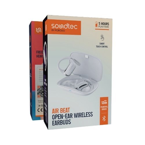 Stay aware and energized during your workouts with the Porodo Soundtec Air Beat Open-Ear Wireless Sport Earbuds, available at the best price in Uganda exclusively from Nabellas Stores. Designed for athletes and fitness enthusiasts in Kampala and beyond, these true wireless earbuds feature an open-ear design that delivers immersive audio while keeping you connected to your surroundings.